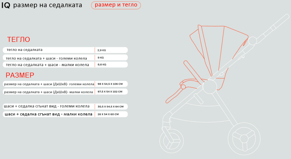 Кош за новородено, седалка и бъги в една количка! Смесете и съчетайте различни части на IQ според вашите нужди. Количката "всичко в едно" се трансформира във всички възможни опции.