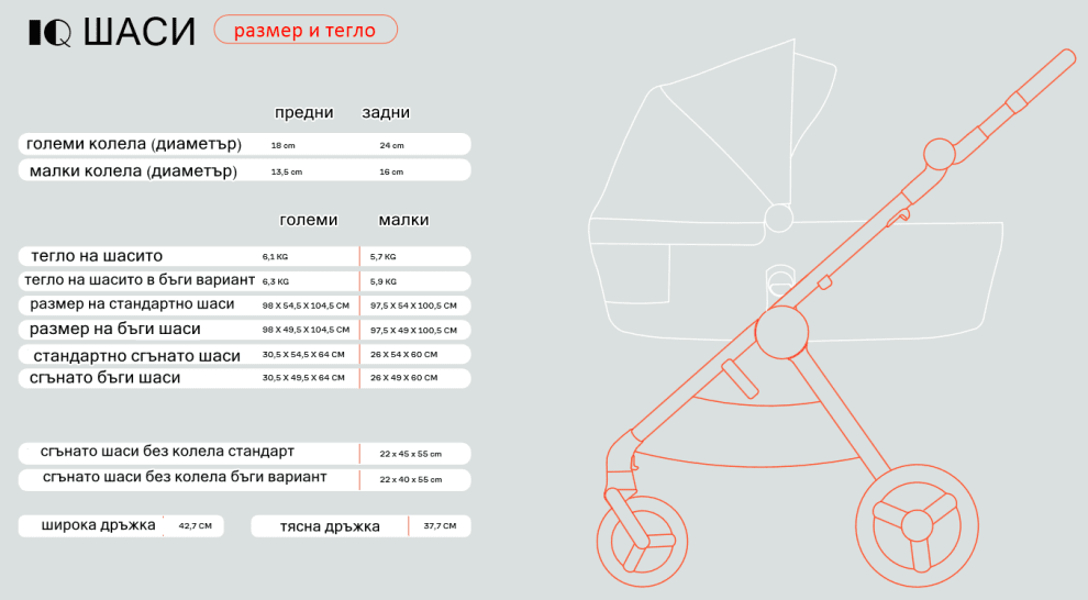 Кош за новородено, седалка и бъги в една количка! Смесете и съчетайте различни части на IQ според вашите нужди. Количката "всичко в едно" се трансформира във всички възможни опции.