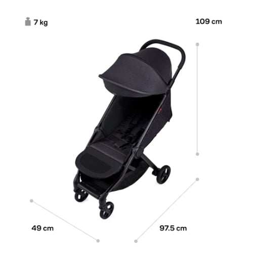 Максимална компактност, за да се побере в кола, самолет или дори килер. Сгъвате рамката заедно със седалката в двете посоки, в размер подходящ за ръчен багаж.