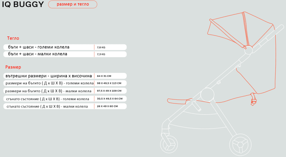 Кош за новородено, седалка и бъги в една количка! Смесете и съчетайте различни части на IQ според вашите нужди. Количката "всичко в едно" се трансформира във всички възможни опции.