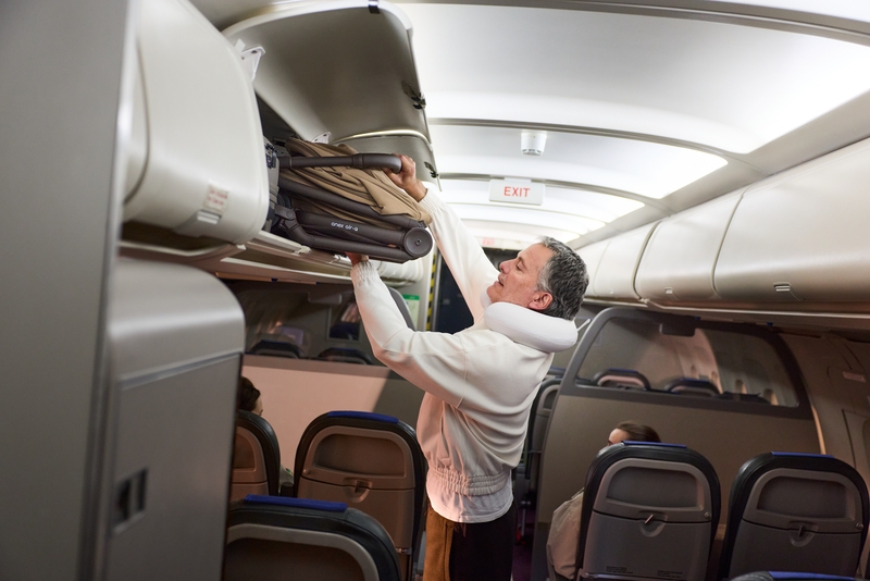 Отговаря на препоръчителните от IATA размери за ръчен багаж — в конфигурации със седалка, кош